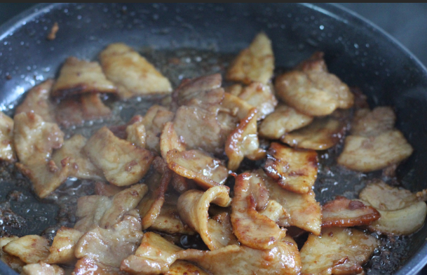 - 팬에 기름을 살짝 두르고 고기를 노릇하게 볶아주세요. 양념이 탈 수 있으니 중약불에서 조리하는 것이 중요합니다.