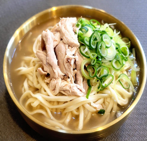 - 닭고기 살과 김가루, 다진 파를 얹으면 완성! [뜨끈한 국물이 추운 날씨에 제격이죠.]